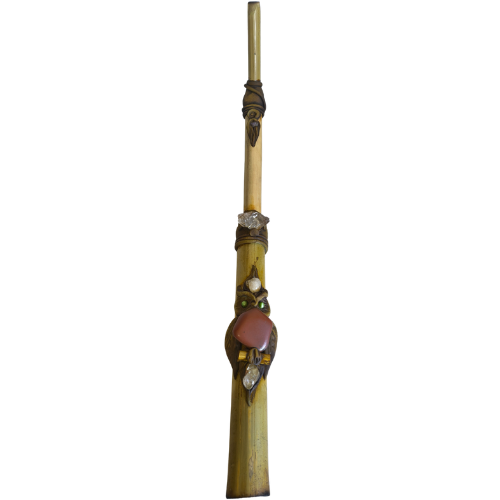 Este Tipi é uma verdadeira joia ritualística, cuidadosamente esculpido em bambu e adornado com a força simbólica da Coruja, guardiã da noite, da intuição e da sabedoria ancestral. Cada detalhe carrega o espírito da floresta e a energia da visão profunda, tão essencial no caminho com as Medicinas da alma.